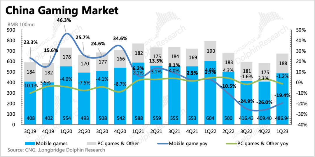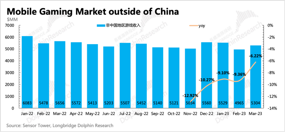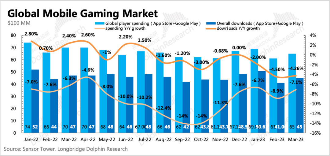 对于腾讯的游戏储备,海豚君也信心较高,在前两天515游戏发布会上,多款游戏预计将在6月前后上线或进行重要测试。而整体海外手游市场的消费热度虽然从去年下半年开始快速回落,但在最近几个月,行业已经能够看到一些触底回升的迹象。因此行业上,后续对腾讯游戏的拖累影响也会逐步减少。
