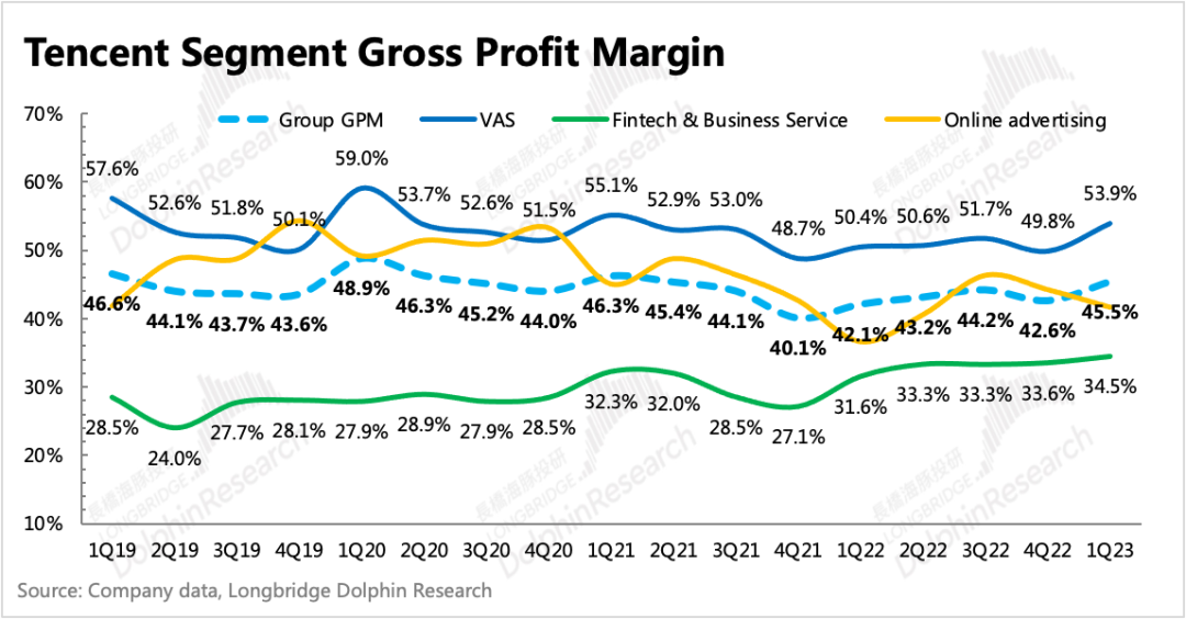 因此一季度的增速反映出的是一个正常的修复情况,其实也比公司当初的指引要高,环比改善的趋势也仍然存在,明显优于行业里面环比增速下滑的情况。并且最新的4月调研数据,腾讯广告表现依旧不俗,因为海豚君认为不必过于在乎短期的波动。