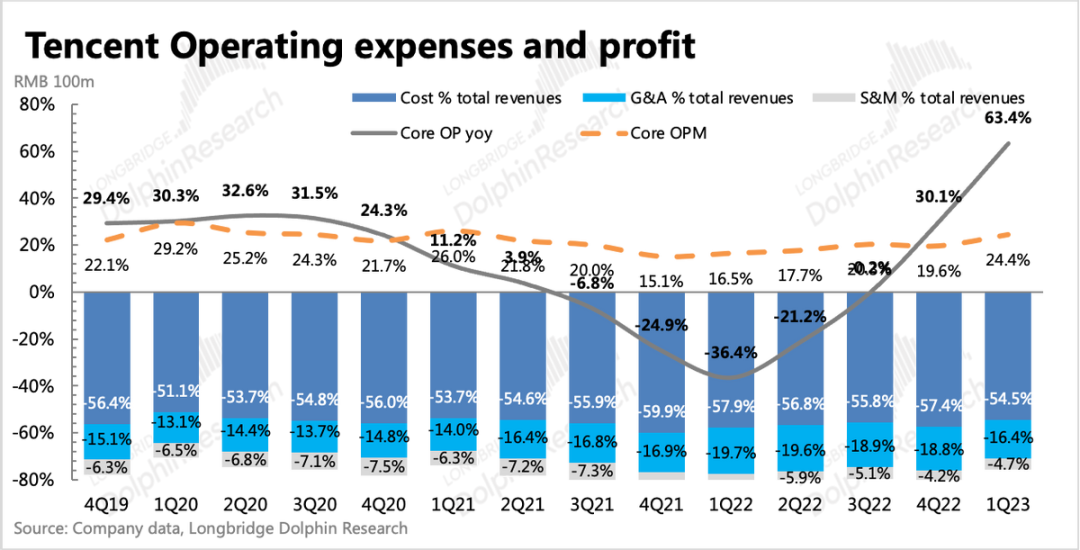 海豚君认为,姑且不讨论收入扩张的速度和幅度是否能够持续beat市场预期,但就利润释放来看,参照往年正常水平,鹅厂的提效功力还有进一步发挥的空间。更何况在自身的业务顺周期下,能够撬动的利润就更高了。