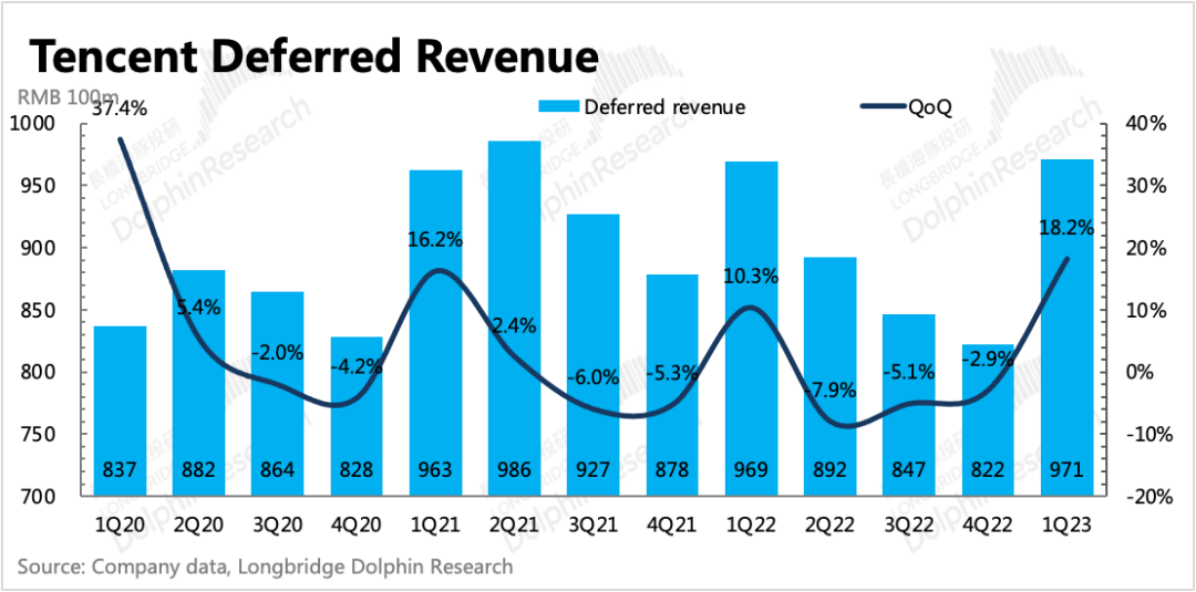 从递延收入和流水情况来看,倒春寒在远离,温暖的春天在临近。一季度短期递延收入达到971亿,同比增长持平,但环比增长18%。
