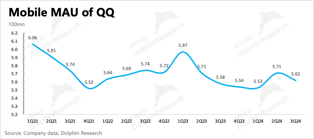 三季度微信用户13.82亿,环比净增1100万,趋势扩张的稳定性超预期。QQ支棱了一个季度后,三季度暑期旺季反而流失了900万人。