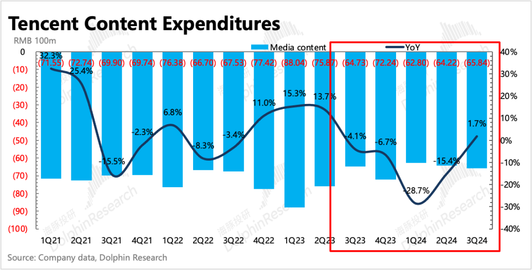 另外,媒体广告可能因为宏观压力,也放缓了增长。三季度腾讯音乐广告为主的其他音乐收入同比增速很快收敛,媒体广告这边,除了腾讯新闻有大量信息流广告外,其他平台多数为品牌广告,这在宏观压力期的表现会相对落后。
