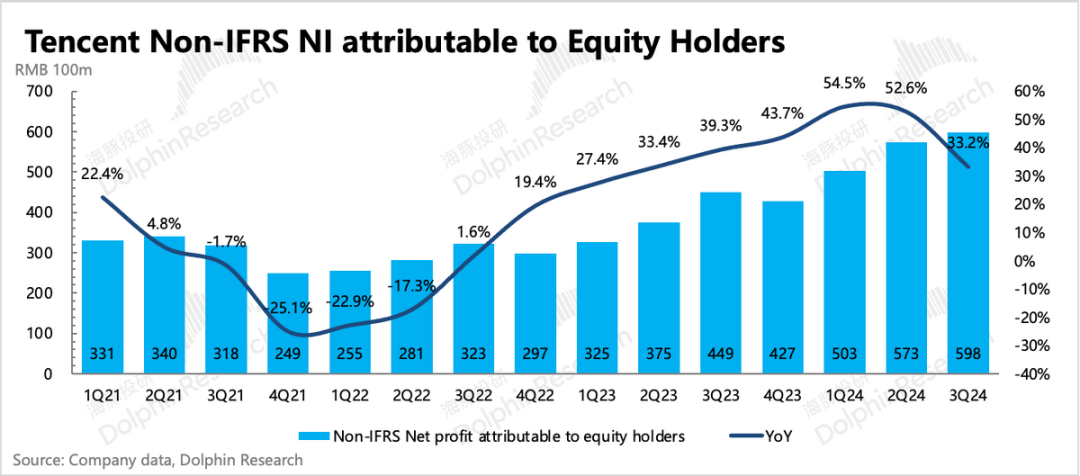 海豚君粗略估算,剔除视频号的增量影响(预估视频号外循环+电商广告合计70-80亿,同比增长60-70%),剩下的传统广告增速预计也有中个位数的增长。