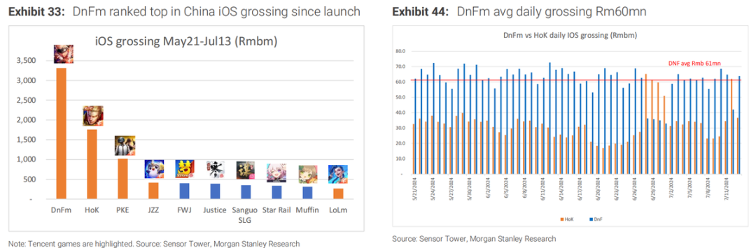 而从7、8月目前的畅销榜排名来看,DNFM持续位居第一,以及和平精英的持续回暖,因此对递延表现也不必过于介怀。目前来看DNFM流水超过王者荣耀,预计首个12月流水预期有望达到200亿。