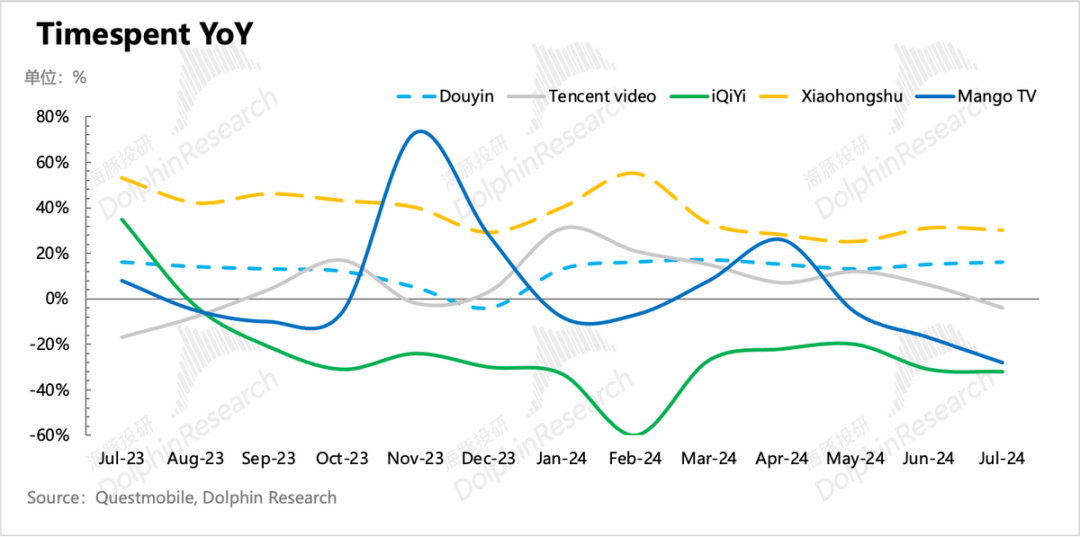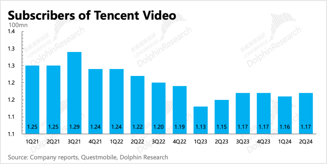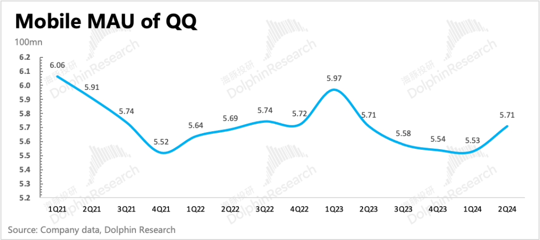增值服务付费用户数Q2继续反弹,环比净增加300万,虽然是淡季但腾讯音乐、腾讯视频的订阅会员数增长,以及DNFM上线带来游戏用户的增长,均会贡献增量。不过腾讯视频虽然二季度多部剧爆火,《与凤行》、《庆余年2》、《玫瑰的故事》,但环比会员数仅新增了100万。从Questmobile数据来看,更多的用户还是选择把时间花给抖音、小红书等平台,同为长视频的爱奇艺、芒果都表现更为稀烂。
