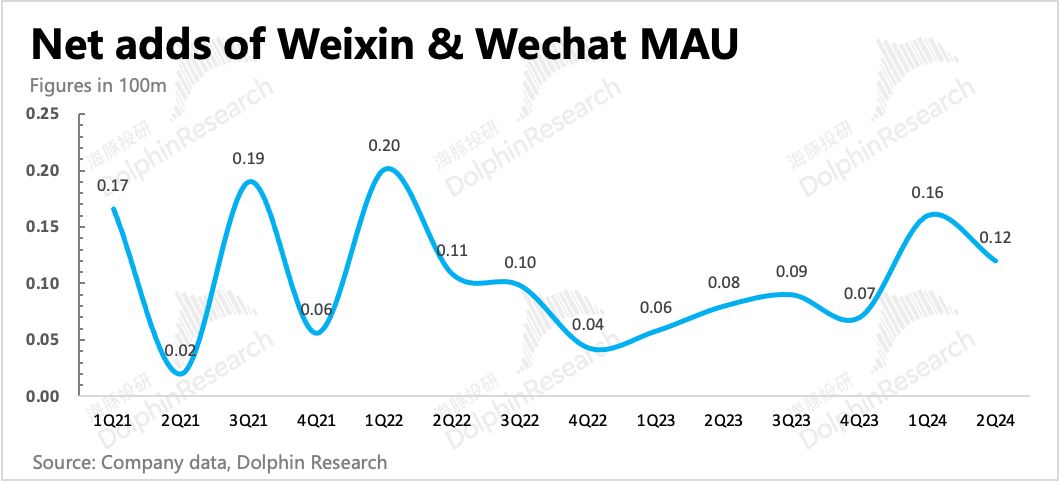 二季度微信用户13.71亿,环比净增1200万,趋势扩张的稳定性超预期。QQ同样存在回暖,净增加1800万人。流量稳定能够支撑微信生态商业化不断加深,QQ的变化还需要继续观察,是否只是短期偶发性的波动。