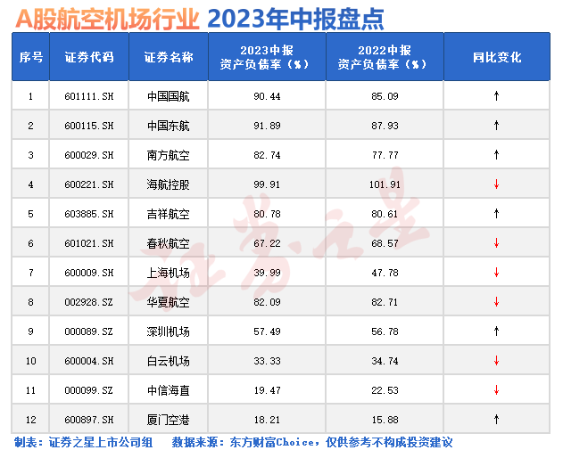 从资产负债率来看,今年上半年,四大航的资产负债率还处于较高水平,行业平均水平则保持在63.63%,同比去年基本持平。其中,海航控股、春秋航空、上海机场、华夏航空、白云机场、中信海直等6家资产负债率同比下降,上海机场、中信海直降幅最为显著。