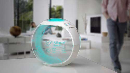 Air Globe从外形看就有点炫酷到不属于这个时代,它被设计成一款能够从温度、湿度、气味和声音四个维度模拟目标地区实时气候的空气管理仪器,该设计理念来自台北科技大学的研究生Pei-Chih Deng。从介绍中我们可以看出,Air Globe兼具空调、加湿、香薰和空气净化的功能,甚至还能发出声音。用户可以直接在球体的地图上点选自己喜欢的城市,该目标城市当下的气温、湿度等数据便会呈现在仪器上,用户确认之后Air Globe便开始启动为用户定制模拟当地的气候。