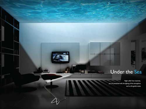 Under The Sea的设计理念,正式希望通过灯光营造一种奇妙的氛围,帮助你快速进入睡眠。当Under The Sea灯头朝向天花板时,它可投射出蔚蓝平静的海面,让我们仿佛置身于海中。而当Under The Sea灯头朝下时,它又重新回归正常工作状态,正常的柔和灯光让你学习、工作、阅读都进行的轻松惬意。