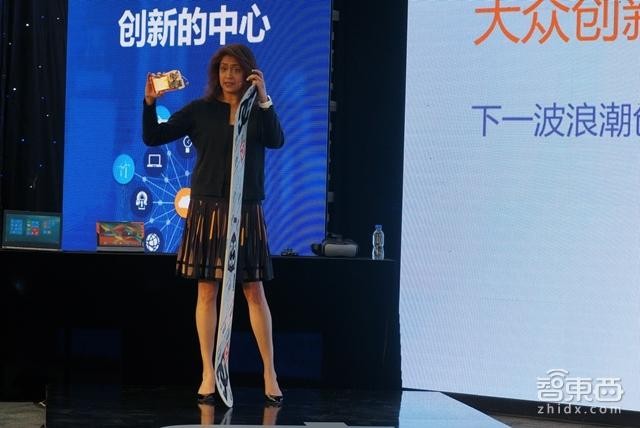 夏乐蓓在演讲中展示了一张与中国公司的合作概况图,在这之中,既有像BAT这样大公司,也有不少初创型企业。“在大众创新的趋势下,我们支持创客和小微型企业,并帮助其建立全球的分享平台。”夏乐蓓这样表示,“这是一个成都女孩的创业项目,其是基于Edison的智能滑雪板,监控运动者的数据。”