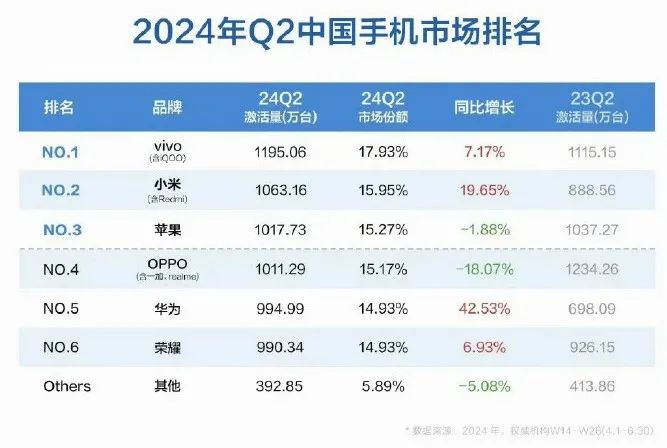 看了一下目前Q2季度的手机市场份额,苹果现在也才就15.2%…