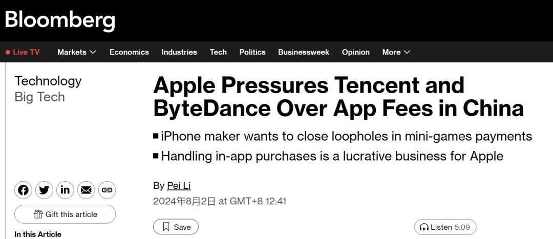 近期,苹果为了“苹果税”向腾讯、字节跳动施压!