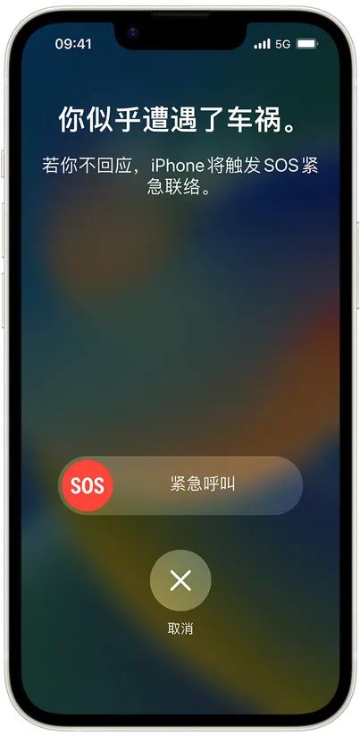 “你似乎遭遇了车祸,若你不回应,iPhone将触发SOS紧急联络。”