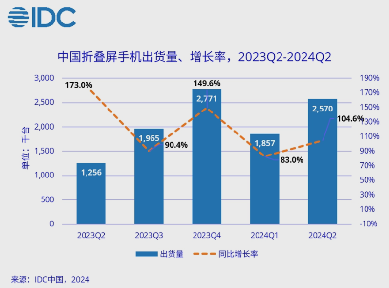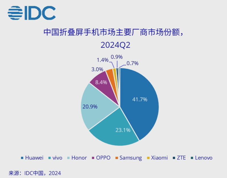 2024年上半年,中国高端智能手机市场份额达到25.9%。同时,折叠屏手机市场也在快速增长,2024年第二季度出货量达到257万台。