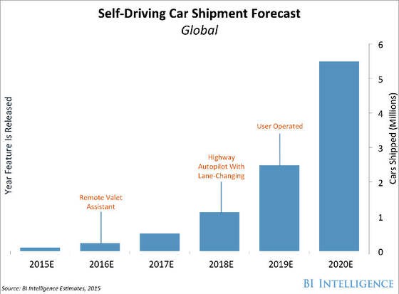 除了诸多相关技术远不成熟外,无人驾驶汽车与电动汽车类似面临成本的门槛。有媒体报道称目前谷歌无人驾驶汽车硬件设备价格就高达25万美元,这一价位使得谷歌推动无人驾驶汽车在五年之内进入寻常百姓家的目标有些不切实际。与之形成鲜明对比的是,汽车人工智能企业MobilEye推出的先进驾驶者辅助系统(ADAS)仅仅只需1000美元便可在普通汽车内安装,该系统能够在开车人开车途中出现打瞌睡、开小差等问题时及时做出反应以防止车辆发生碰撞事故。这与前述传统汽车厂商的发展策略一致,也更切合实际。正是基于此,BI预测到2020年,仅会有1000万辆无人驾驶汽车的销量,在汽车中所占市场份额可以忽略不计。