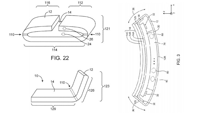 和其它柔性电子品专利不同的是,苹果专利还将有延展性的外部配件,比如机壳或屏幕玻璃,与电池、电路板、显示屏等柔性内部配件整合在一起。鉴 于目前“直板式”iPhone,苹果的这项专利技术至少包括柔性的 OLED 屏幕、电容式触摸传感器、基片和玻璃覆盖层。要实现弯曲,iPhone 的底架肯定不能使用铝合金材质,而是改用塑料、薄玻璃和纤维复合材料,或者其他能承受经常弯曲的组合材料。当然,柔性的电路板也要保留一些“坚硬”区域, 从而来保护 CPU 和其他零部件。