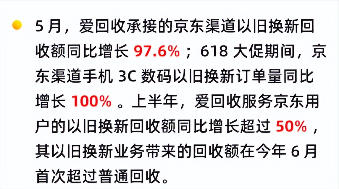 据财报,今年上半年,爱回收服务来自京东渠道的以旧换新回收额同比增长超过50%。6月,万物新生也完成与京东的战略合作续约,双方将在二手3C回收、以旧换新和二手优品零售等核心业务上深化合作。