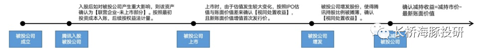 a.确定腾讯持有成本。由于腾讯在京东、美团、拼多多上市时,涉及到公允价值发生重大变化,按照上市估值与当时持有资产账面价值之差确认了【视同处置收益】,这些上市之后,腾讯报表上所体现的这部分投资资产价值为上市发行价对应的股权价值,再按照权益法(如被投公司经营产生的利润则按持股比例来计入到资产规模)进行后续计量。