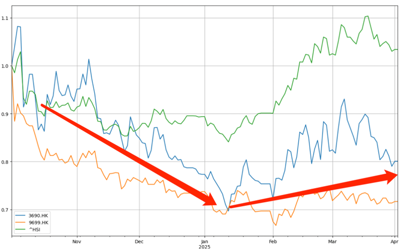 但2025年春节之后,恒生指数与顺丰同城又再次分化,前者更是经历了一轮小牛市,相较之下后者并没有太突出表现,除了众所周知的DeepSeek驱动牛市这一因素之外,是否还有其他原因呢?