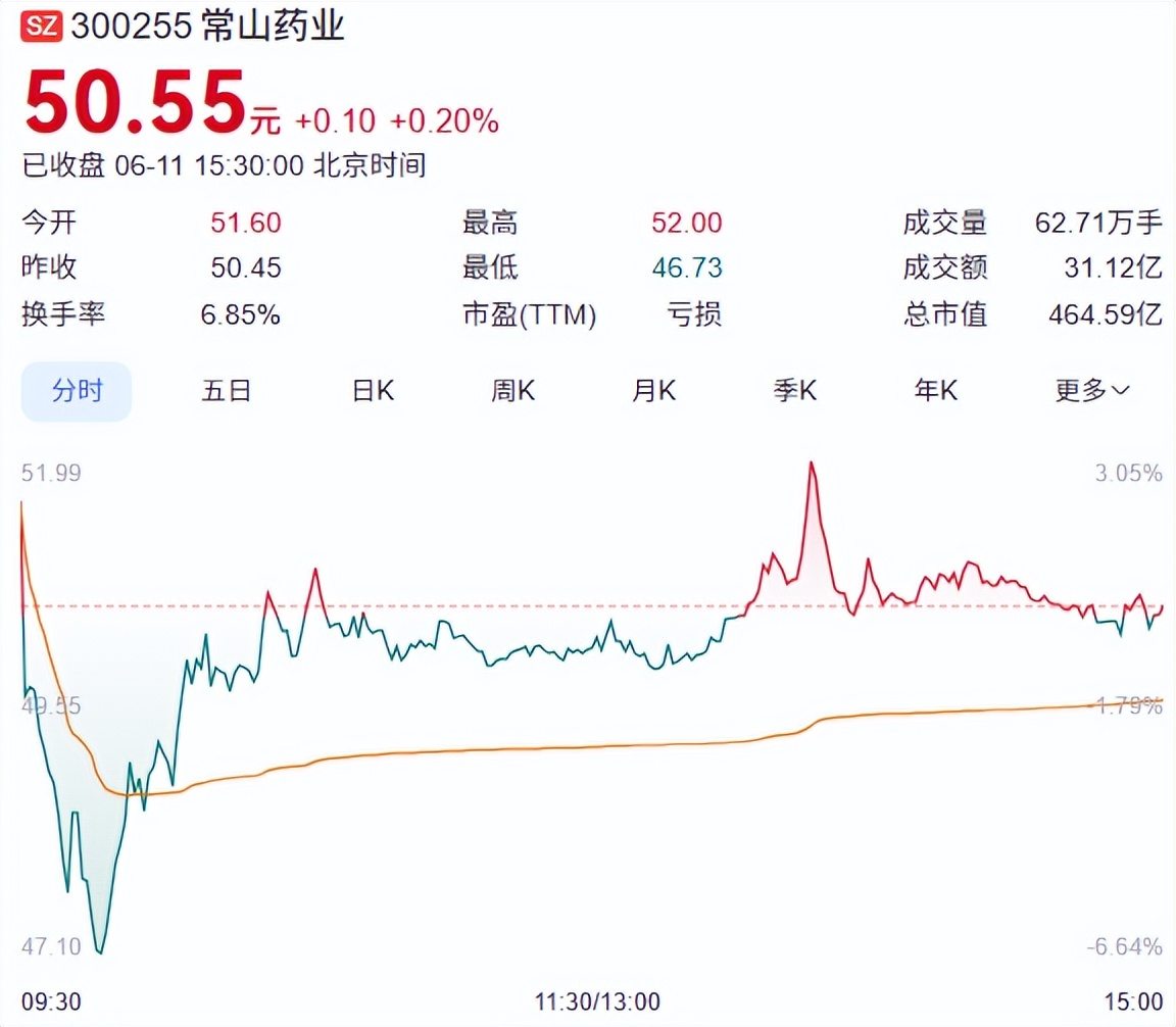 据了解,2025年5月6日至6月9日,常山药业股价累计涨幅达147.69%;6月9日,该公司股价触及涨停,涨幅20%,总市值达478.74亿元,创历史新高;截至今日收盘,公司股价报50.55元/股。