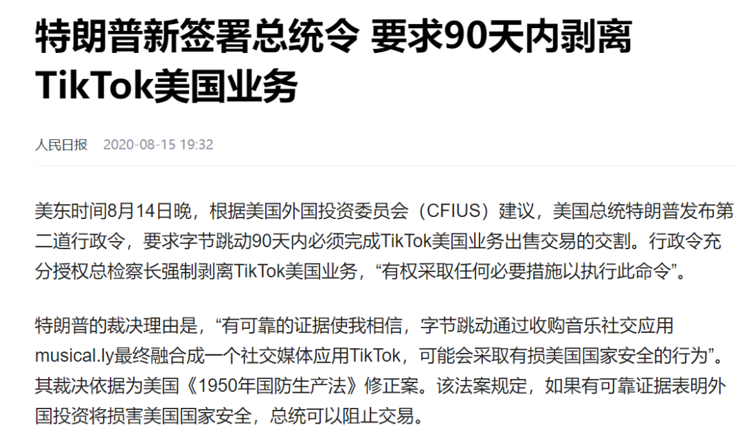 而一旦字节跳动被迫将TikTok所持有的股权出售,或将意味着字节跳动不再对TikTok具有控制权,甚至该应用程序的核心算法的控制权也将不得不拱手让人。