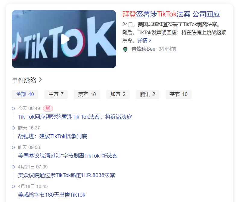 只是,美国政府对TikTok的敌意,并没有因此消停。甚至自2024年开始,美国政客更是对TikTok开展了更为激烈的“围猎”。