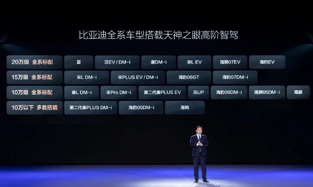 在那天发布会上,让我印象最深刻的一句PPT语是:「2025买车看智驾」。如果是别家说出这句话,你可以看出只是营销噱头或钩子,但是当销量绝对龙头比亚迪说出这句话,你就不得不重视。这次比亚迪的天神之眼无疑是直接给智驾行业抛下核弹,影响非常深远。目前,高阶智驾主要在20万以上市场被普及,但是9万-15万级左右的汽车市场,高阶智驾覆盖率并不高。但是比亚迪天神之眼C的出现直接改变了这一格局。在7万级到20万级车型上对高阶智驾进行了普及,直接推动智驾平权,重塑行业标准。