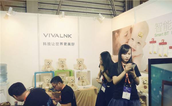 上海CES亚洲展会上,Vivalnk发布了全球首款儿童“电子皮肤”无线体温贴 Vivabear™。展会上Vivalnk展示了具有超薄柔软特性、卡通 可爱外形的Vivabear™是如何与毛绒玩具BT熊配合测量体温的。两只小熊有何独特呢?VivabearTM是Vivalnk发布的全球首款儿童”电 子皮肤”NFC柔性体温贴,配合智能BT熊,将儿童体温测量变成一件有趣的事情。