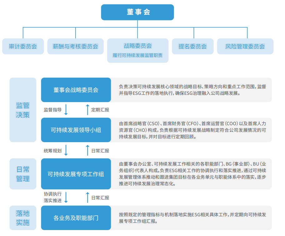 作为中国及亚洲最大、全球第四大综合物流服务提供商,顺丰控股将ESG理念融入公司发展战略,搭建科学、专业的ESG管理体系与清晰、透明的ESG治理架构,全面落实ESG相关策略,助力公司业务的可持续发展。2023年,顺丰控股连续2年登上《财富》“中国ESG影响力榜”,连续3年纳入富时罗素社会责任指数系列,并荣获中国上市公司协会2023年度“上市公司ESG最佳实践案例”。