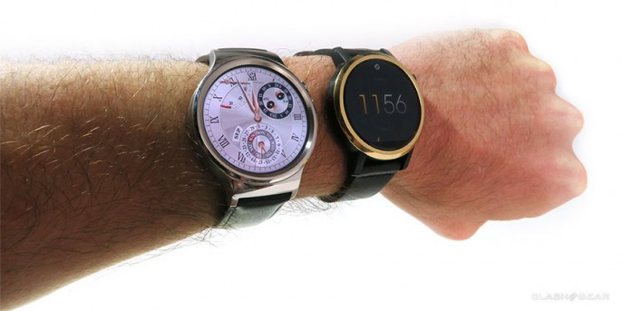 另一款比较相似的同类智能手表是Huawei Watch,它42mm版本的显示屏直径为35.56mm。Huawei Watch与Moto 360(2015)外型上有很多相似之处。不过别被Moto 360(2015)和Huawei Watch相似的外观所迷惑,它们在功能上有很大的不同。