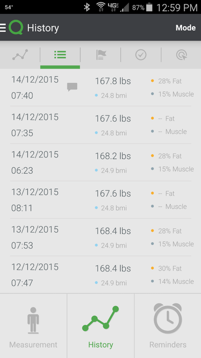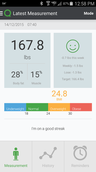 我们决定把这件事放在一边,只看BMI作为数字的改进。跟踪记录进程确实是QardioBase最大的优点。