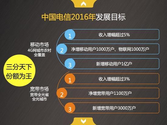 在用户发展方面,中国电信表示希望2016年4G用户占比达80%,其中4G+终端占比达30%。