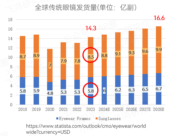 传统眼镜,全球一年发货约14亿副,比智能手机的12亿台还多。这是一个很多人忽视的数字。