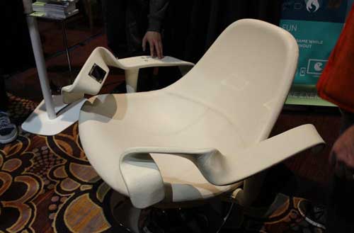 Tao Wellness公司就推出了这样一款Tao Chair智能健身椅,它最大的特别之处就在于它所拥有的健身功能。在Tao Chair上,厂商安装了一系列的健身传感器。当使用者坐上去之后可以在上面进行多样的健身活动,例如手臂弯举、抬腿。椅子右边扶手则可显示运动过程中消耗的卡路里等运动数据。不过千万不要以为坐在椅子上,就能轻松地完成这些动作。由于特殊的人机工程设计,Tao Chair使用户完成其制定动作时,需要使用一定的力量才能做到,因此就可以达到健身的效果。