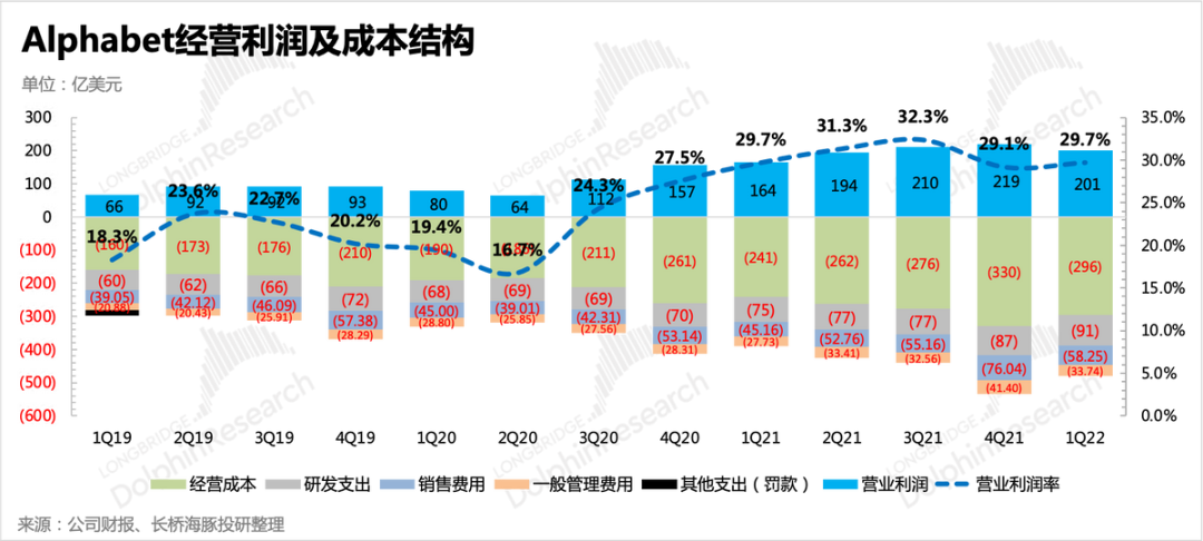(2)相比之下,本季度云业务表现更优,不过盈利情况仍然没有改善。随着谷歌相继拿下越来越多规模较大的长期合同,不断提升市场渗透率,第二增长曲线对估值的支撑力也会慢慢得以体现。当然,谷歌也仍然需要通过利润改善,来证明自己的云业务抢单能力,与亚马逊、微软相比,不是靠“便宜”,而是靠“实力”。