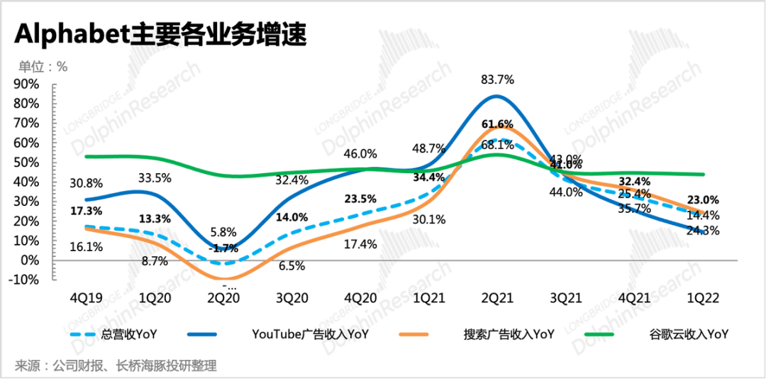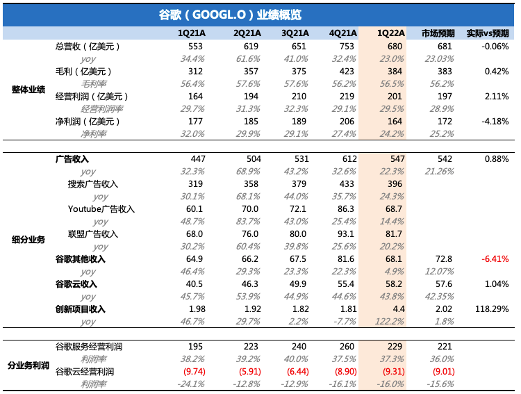 虽然谷歌这次成绩整体来看基本达标,但以往一贯超预期,这次却没有带来什么惊喜,并且市场基于一季度的突发事件及各种利空,俄乌摩擦、高通胀等,在最近一个月已经对此前的预期有所下调。因此这么一看,这份合格的成绩单也显得有一些“水分”。
