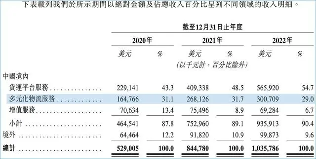 招股书显示,过去三年里,货拉拉多元化物流服务业务总营收占比一直维持在30%左右。这说明该业务版块正逐步向同城货运主版块看齐。
