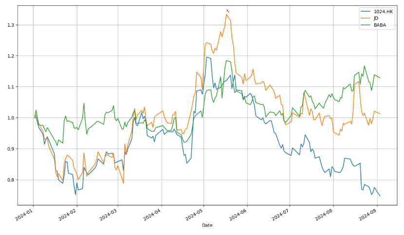 这就使得其资本市场表现与电商类企业呈现高度的相关性,上图为2024年至今快手与阿里,京东的市值变化情况(起始点均为“1”),三条折线走出了高度同频的节奏。
