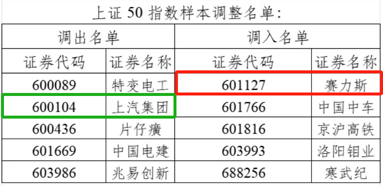 上证50指数,一个被调入一个被调出!都是汽车制造的优秀代表,但这一进一出,让我们见证了一个时代的更替。