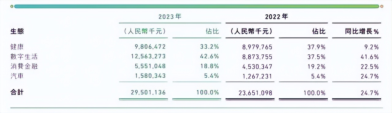 核心业务的发展也一定程度获得科技赋能。财报显示,技术助力下,2023年,众安在线健康、数字生活、消费金融、汽车这几大业务分别实现保费收入98.06亿元、125.63亿元、55.51亿元、15.8亿元,同比增长9.2%、41.6%、22.5%、24.7%。