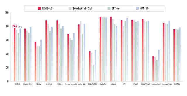 作为百度新一代基座大模型,文心大模型4.5的多项基准测试成绩优于GPT4.5、DeepSeek-V3等,并在平均分上以79.6分高于GPT4.5的79.14。据介绍,文心大模型4.5在多模态理解能力上显著提升,不仅有图形推理、图表分析的“高智商”,还具备理解梗图、漫画、歌曲、电影等多模态内容的“高情商”。