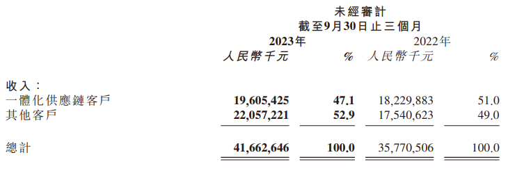 另一方面,该部分收入的增加也受到外部客户整体收入增加的推动。值得注意的是,尽管外部一体化供应链客户数量出现下滑,但并未影响外部客户整体收入的上涨。财报数据显示,2023年三季度外部客户数量为54,212名,而2022年同期为62,629名。