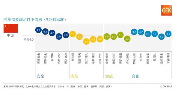 当谈及中国消费者希望从车联网中有何获益时,他们将保证安全放在了首要的位置,随后是物有所值和良好的耐用性。尤其需要指出的是针对“座椅舒适”、“操控性好”、“保护健康”以及“身心放松”方面,中国的消费者对这方面的需求是本次调研各个国家中最高的。因此各汽车制造商尤其不能忽视在消费者舒适和享受方面的设备提供。