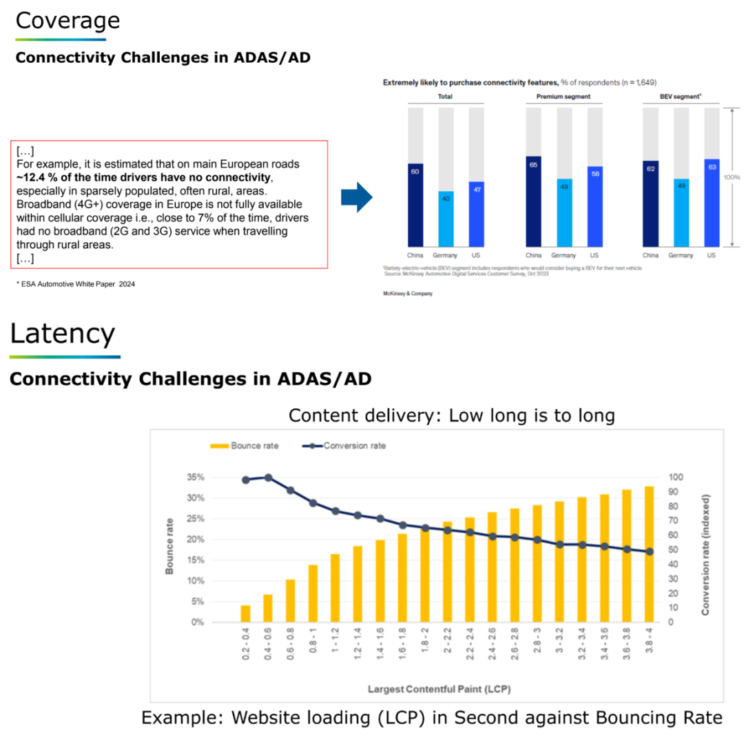 这对辅助驾驶系统中的导航、车队管理、故障诊断、eCall/bCall等服务构成巨大挑战。更为严峻的是,在复杂城市或农村地形中,信号遮挡与网络拥堵问题会进一步放大通信延迟,降低用户体验,甚至危及系统安全。