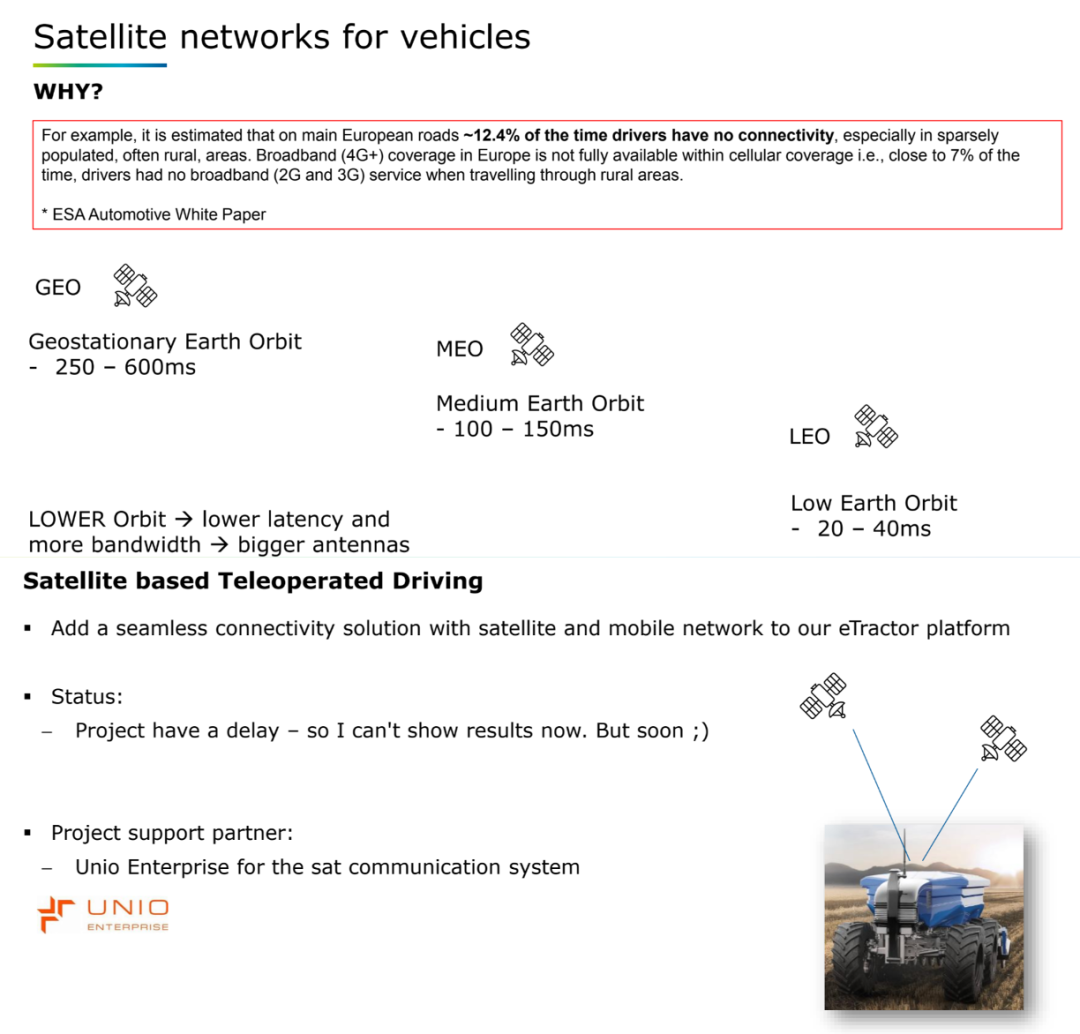 ◎例如,农业自动化设备依赖数据驱动精准作业,通过多网络融合实现远程调度、自动巡航与设备健康监测;◎车队管理平台可借助实时数据上传与OTA升级实现统一运维和运营优化;◎而在远程驾驶应用中,尤其是在物流与城市清障领域,多网络通信可为L3/L4级自动驾驶提供关键的冗余接管机制,保障高可靠性通信支持。