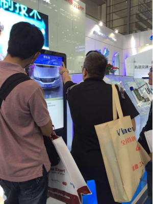 观展嘉宾亲自体验达实信息停车场管理系统中的“反向寻车导航系统”功能