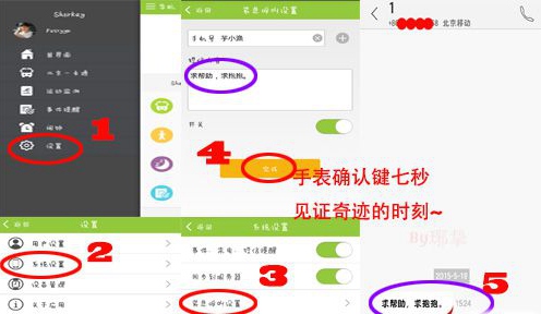 Sharkey手表端完全没有紧急呼救相关的文字提示,但是在手机端却拥有这样一个设置,如果遇到危险,将手表端确认按键长按7秒,手表会回以震动提示积极呼救成功,随即,事先编辑好的求救内容就会立刻发送到事先设定好的电话号码上,不为外人所知的呼救才是呼救,明目张胆的呼救多数时候等同于作死。