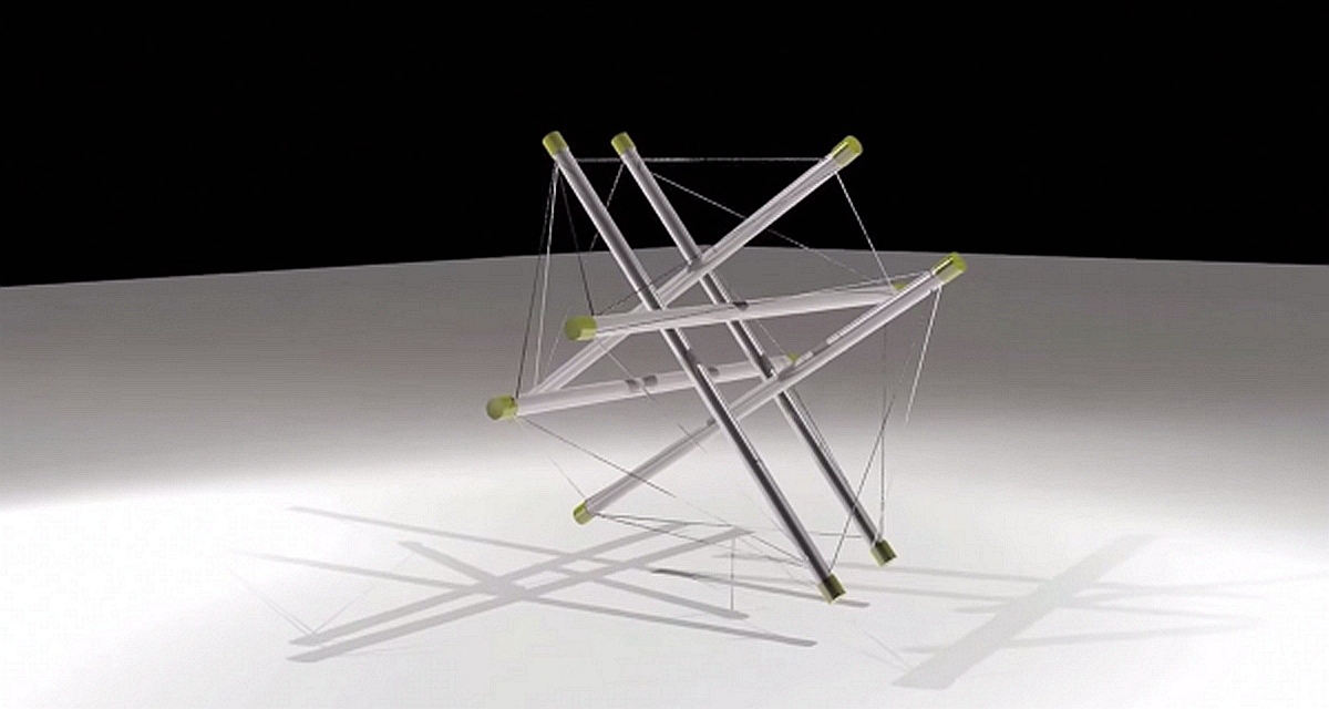 两人首次意识到可压缩结构的潜力,是在玩一个用线缆连接在一起的六杆儿童玩具时。Agogino 把玩具抛向空中,SunSpiral 则注意到玩具着陆时吸收冲力的效果非常好。SunSpiral 立刻想到,这就是一个着陆机器人!