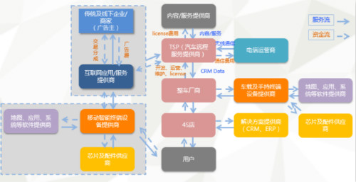 2012年,中国电信将以商用车、乘用车、新能源车等车载服务作为切入点,合作开展上海地区车联网与车载信息服务项目的研究探索,去年在无锡发布了中国电信车联网智能交通信息服务系统;而中国联通也和爱尔兰Cubic Telecom签署合作协议,共同给特斯拉提供汽车信息化全面解决方案,为中国的特斯拉用户提供汽车信息化服务。而与其他通信公司不同,中国移动与德国电信签署合资协议,成立车联网合资公司,依托德国电信的车联网平台技术,以及中国移动的网络资源、本地业务开发运营经验,面向车载前装、后装市场提供硬件、车联网云平台、系统集成和运营以及内容服务端的车联网解决方案。