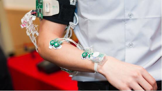因此,Jafari放弃了摄像头,转而使用了外置动作传感器和可穿戴肌肉追踪传感器,这些传感器是基于肌动电流图(EMG)技术所研发的,可检测到运动神经元传输到肌肉的电信号,而EMG可以把这些信号转化成计算机和专业人士可以理解的数值。